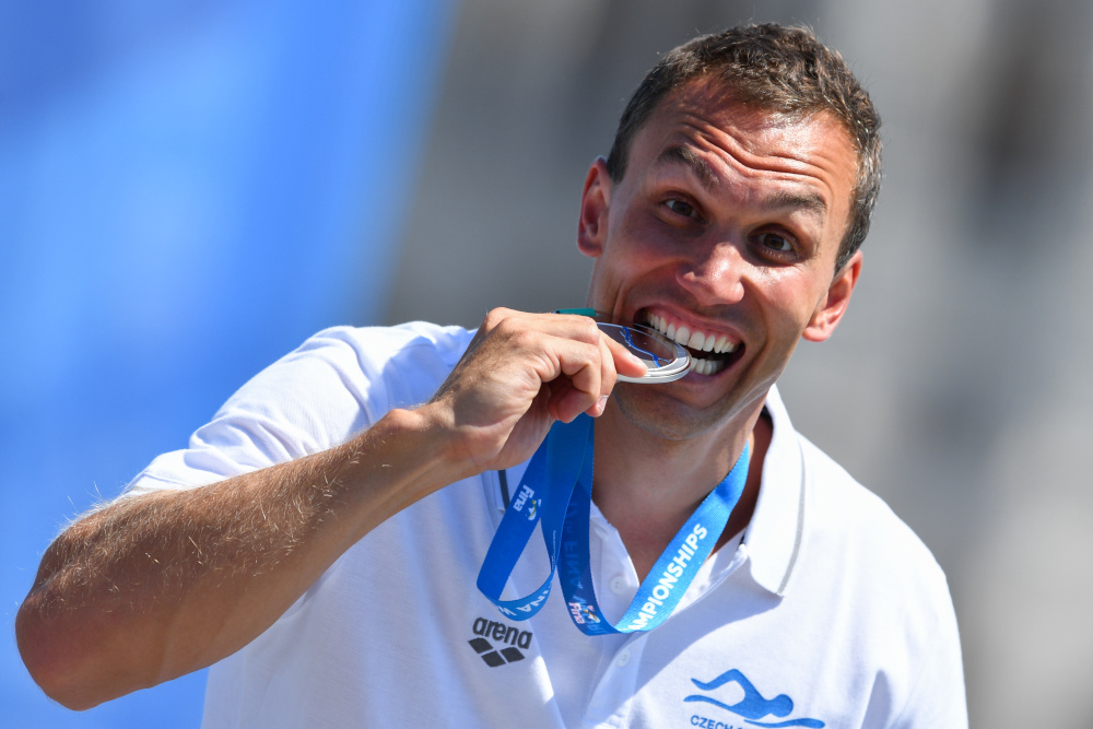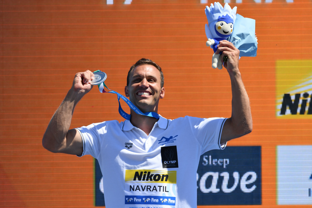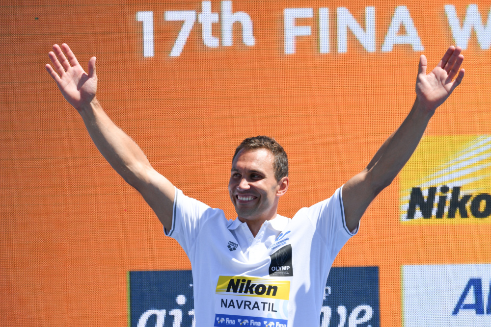 Mimořádného úspěchu se v závěrečný den světového šampionátu v plavání v Budapešti dočkal extrémní skokan do vody Michal Navrátil. Ve dvoudenní soutěži z věže vysoké 27 metrů dokázal skvěle zvládnout všechny čtyři skoky a stal se vicemistrem světa. Jeho stříbrná medaile je pro české plavání prvním cenným kovem od roku 2003, kdy Ilona Hlaváčková vybojovala rovněž stříbro na trati 50 metrů znak. Navrátila porazil jen Američan Steve Lo Bue.Michal Navrátil šel do druhé dne závody z druhé pozice, kterou si vyskákal v pátečním odpoledni. Na vedoucího Brita Hunta ztrácel 14 bodů a naopak Garcia z Kolumbie dýchal Navrátilovi na záda s odstupem jediného bodu. Český skokan předvedl v nedělním prvním skoku jistý výkon. A I když se před něho posunul Američa Lo Bue, stále živil naději na medaili.