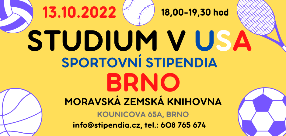 Stipendia.cz již více než 17 let pomáhá našim sportovcům získat stipendia na amerických univerzitách. Během těchto seminářů jsou prezentovány veškeré základní informace o studiu, podmínkách pro přijetí a především možnostech získání sportovních a akademických stipendií v USA. Semináře se budou konat v Praze dne 4.10.2022 a v Brně dne 13.10.2022. Jsou vhodné pro sportovce ze středních a vysokých škol.